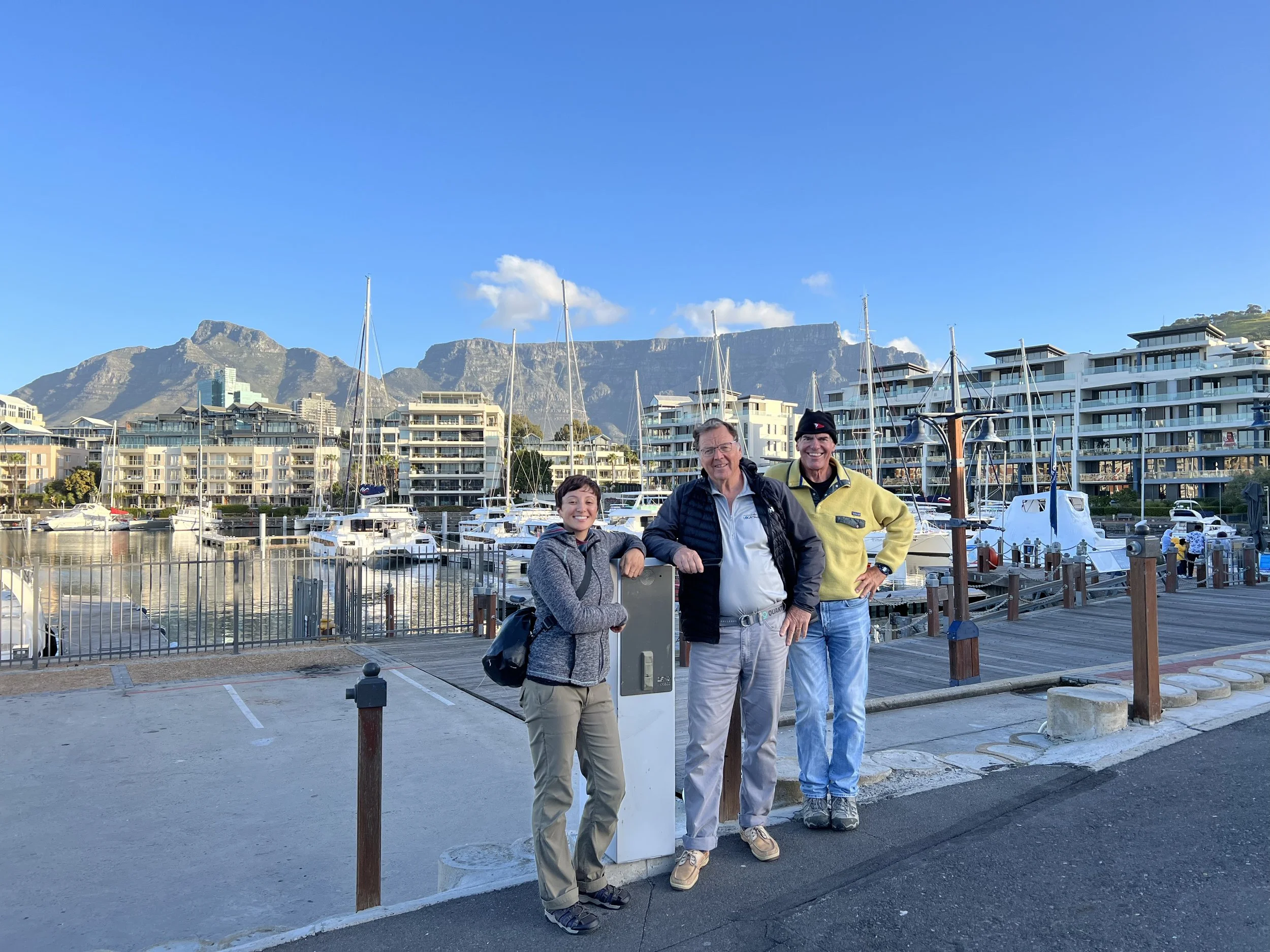 Emmy, Mark, and Ed with Table Mountain and the Marina.